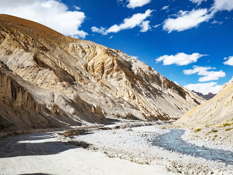 Sarchuto Leh Drive - Early morning drive to Leh gives you a feeling of being in the high Tibetan Plateau. One climbs a series of Galta loops consisting of 32 hairpin bends on the way up from Sarchu and come out in Pang valley. It is here that one can divert to the right and visit the huge high-altitude lakes of Tsokar and Tsomoriri. Cross to the other side of the Pang, Tzanspo River to continue drive up to yet another plateau for a long traverse on the legendary Moore plains. The highest of the Tibetan Plateau at 4200 Mts. Continue driving Tangling La (5360 Mts.) the second highest motorable pass in the world that commands breath taking views of the Zanskar range. A pleasant drive about 20 Kms brings you to the Ladakhi hamlet, Gya, heralded by prayer flags. After crossing few more villages, one reaches the great Indus River.