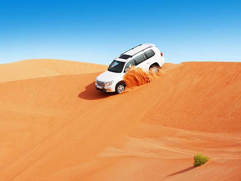 Evening get ready for the ultimate ride on a Desert Safari which is full of fun, adventure and excitement where you experience the thrill of a roller coaster ride on the sand dunes. We stop on the highest sand dune to view the beautiful sunset for some breathtaking photographs and refresh your selves with mineral water. We then continue our journey to our Bedouin Campsite located in the heart of the Desert, where soft drink, water, tea or coffee is available for you to choose from. Camel rides waits for you. Trial of local smoking called Shisha on different flavours. While you relax and recline in the tents or tables with carpet and pillows a delicious BBQ is being prepared under the starlit sky. Adding to the atmosphere of the night, an enchanting belly dancer shows a fascinating dance to a rhythm of an Arabic music, thereafter BBQ buffet dinner will be served. Overnight in Dubai