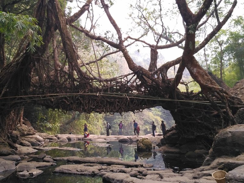 Drive to Dawki (03 hrs)close to India-Bangladesh Border followed by visit to Mawlynnong Village.Place of interest to be found here includes natural beauty, excellent day walks for birding, a haven for botany, living root bridge crossing numerous streams, rivers and cascading waterfalls. Option to go for boat ride in Umgot river.Later drive back to Shillong for overnight.