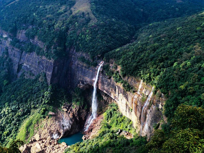 NohkalikaiFalls: A hauntingly beautiful waterfall, cascading down from the top of the gorge to the mystic deep green pool below, reminds one of the tragic legend associated with it- of a grief stricken mother who plunged to her death, unable to overcome her sorrow of the murder of her daughter by her husband.